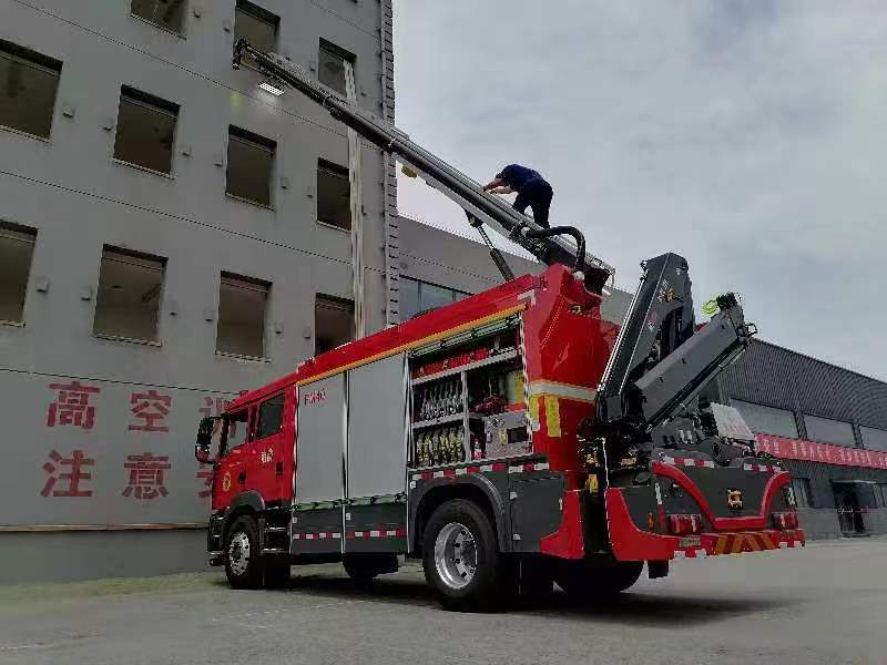 舉升搶險主戰(zhàn)消防車可謂是“當(dāng)紅”產(chǎn)品,可以將搶險救援車、水罐泡沫車、高噴車三種功能組合在一起的特種車型,使用舉升臂架進(jìn)行噴射時可以跨越障礙,直接射向滅火目標(biāo),特別適合城市密集小區(qū)、廠房、高速公路及隧道等火災(zāi)的撲救,一車多功能的結(jié)構(gòu)形式,更適合于現(xiàn)代的應(yīng)急搶險救援部隊(duì)使用,組合式的結(jié)構(gòu)形式,減少現(xiàn)場的占地空間,使用起來更加方便靈活,伸縮鋁合金拉梯高度可達(dá)15米,實(shí)現(xiàn)高空救援,隨車配備救生衣及水上救援機(jī)器人等水域救援裝備,配備大流量消防槍,可噴射水、A 類泡沫、B 類泡沫、CAFS等。