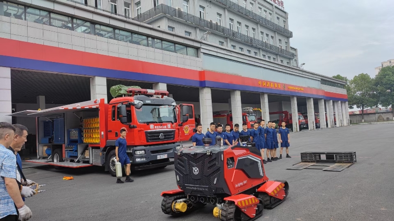在演示活動上,我公司自主研發(fā)的全地形消防滅火機(jī)器人,通過全程智能化遙控操作,可以更好的完成現(xiàn)場救災(zāi)滅火任務(wù)。四履帶獨(dú)立驅(qū)動,可以全地形移動,360度原地調(diào)頭,同時還可以實(shí)現(xiàn)高空出水等諸多高難度動作,具有靈活、高效、安全的特點(diǎn)。